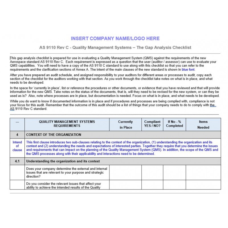 This AS9110 Rev C Gap Checklist is 71 pages and provided to you in Microsoft Word for easy editing. Each requirement is expressed as a question that the user (auditor / assessor) can use to evaluate your QMS capabilities.